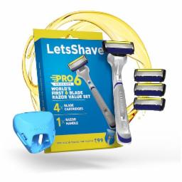 LetsShave Pro 6 Advance Shaving Razor Value Set with 4 Blades 1 Handle + Razor Cap, World's First 6-Blade Razor with Precision Back Blade Argan Oil & Aloe Vera Infused moisturizing strip, Shaving Kit