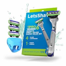 LetsShave Pro 6 Sensitive Shaving Razor Value Set, 4 Blades 1 Handle + Razor Cap, World's First 6-Blade Razor with Precision Back Blade Argan Oil & Aloe Vera Infused moisturizing strip, Shaving Kit