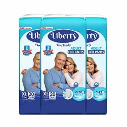 Liberty Eco Adult Diaper Pants, Extra Large (XL) Size, 60 Count, Waist Size (96-165cm | 38-65nches), Unisex, High Absorbency, Leak Proof, Overnight Protection, Pack of 3, 20 count/pack