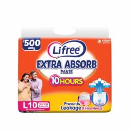 Lifree Extra Absorb Adult Diaper Pants | Size L | Waist (35-49 Inches) |Upto 10 Hours Absorbption | Prevents Leakage & Heaviness | 10 Count