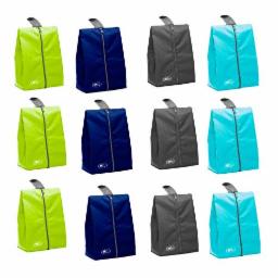 Lify Shoe Storage Organizer Bags Set, Water-Resistant Nylon Fabric with Sturdy Zipper for Traveling (12 Piece Pack) (Navy Blue3 + Aqua Blue3+ Grey3 +Florescent3)