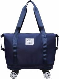 LIGHTNIING HAMMERZ Expandable Rolling Duffle Bag with Wheels and Handle for Travel, Foldable Luggage Carry-on Duffel, (Navy Blue)