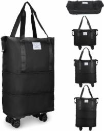 LIGHTNIING HAMMERZ Rolling Duffle Bag with Wheels, Expandable Foldable Duffle Bag with Wheels and Handle for Travel, Rolling Luggage Bag Carry on Duffel Bag, Wheeled Travel Duffle Bag, (Black)