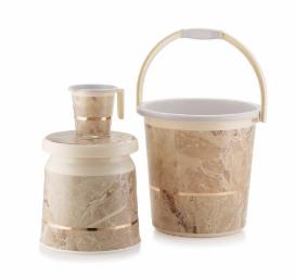 Liza 3 pcs Bathroom Accessories Set Plastic Bath Set Bathroom Bucket 20Ltr, Mug and Stool 3 Piece Combo Set for Home, Kitchen & Bathroom (Beige)