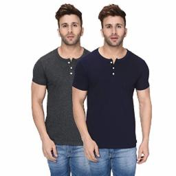 London Hills Men's Half Sleeve Vertical Stripes Printed Dark Blue, Dark Grey Cotton Regular Fit T-Shirts (Combo Pack Of 2), 2XL