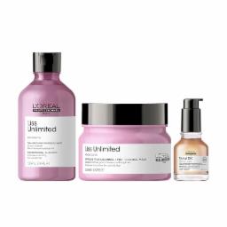 L'OREAL PROFESSIONNEL PARIS Serie Expert Liss Unlimited Shampoo 300ml, Liss Unlimited Mask 250gm & Metal DX Oil 50ml Combo
