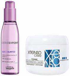 L'OREAL PROFESSIONNEL PARIS Xtenso Care Masque 196 Gm, For Straightened Hair & L'Oréal Professionnel Serie Expert Liss Unlimited Blow Dry Serum 125 Ml, For Frizz-Free Hair