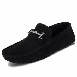 LOUIS STITCH Suede Loafers for Men | Designer Buckle Moccasins | Formal & Casual Slip-On Shoes | Ideal for Business, Parties, Everyday Wear | Solid Obsidian Black | UK Size 7 (ITSUD-)