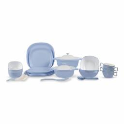 Lumiset 31-Piece Premium Plastic Lightweight and Durable Full Dinner Set| 100% Food Grade BPA Free| Giftset| Microwave and Dishwasher Safe| Light Blue