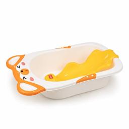 LuvLap Bubble Baby Bathtub (White & Orange) & Anti Slip Baby Plastic Bath Chair (Yellow), Bathtub with Drain Plug, Baby Bath Seat/Sling with Non Slip Suction Base, Baby Bathing Essential