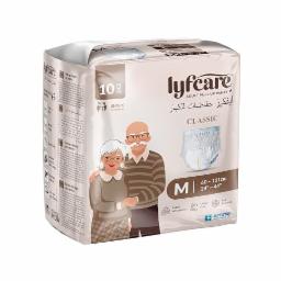 Lyfcare Classic Adult Diapers Medium Size (M) - 10 Units | Unisex Diapers Pants Style | Waist (60-85 cm) | Wetness Indicator, Super Absorption, 360° Protection & 0% Leakage | For Men & Women