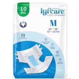 Lyfcare Open Tape Adult Diaper Medium Size (M) - 10 Units | Unisex Diapers Open Tape Style | Waist (63-127 cm) | Wetness Indicator, Super Absorption, 360° Protection & 0% Leakage | For Men & Women