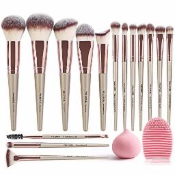 MAANGE Makeup Brushes 15Pcs Makeup Brush Set Premium Synthetic Foundation Face Powder Blush Concealers Make Up Brushes Sets with Makeup Sponge and Brush Cleaner?Champagne)