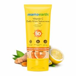 Mamaearth Vitamin C Daily Glow Sunscreen For All Skin Types Spf 50 Pa+++ | No White Cast With Vitamin C & Turmeric, Lightweight, For Sun Protection & Glow - 80 G, Pack Of 1