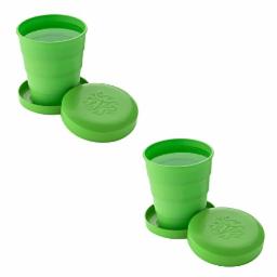 MAPPERZ Collapsible Expandable Travel Glass Reusable to Go Pocket Size PVC Cup for Hot Cold Drinks Camping and Hiking Microwave Dishwasher Safe Drinking Cup Set Portable Graduated (Set of 2)
