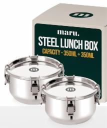 MARU Steel Small Leakproof Tiffin/Lunch Box for School/Office - 350ml Set of 2, Container Avoid Spilling of Curry & Liquid Items, Airtight Snacks Box is Perfect for Men/Women & Kids