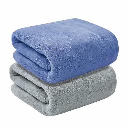 MAXOSHINE Microfiber Towels for Bath-Soft Coral Fleece Towel with Hook Quick Dry Super Absorbent-Bath Towel for Men and Women-70 x 140 cm (Grey/Blue, Pack of 2)