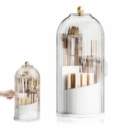 MAYCREATE® Makeup Brush Holder Organizer with Lid, 360° Rotatable Makeup Brushes Storage Case, Dustproof Clear 3-Grid Cosmetic Organizer Stand for Vanity Desktop Bathroom