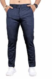 Mehrang Men's Low Rise Slim Fit Casual Trousers, Black, Cotton Blend, Side Pockets (Numeric, 34, Regular, Navy Blue)