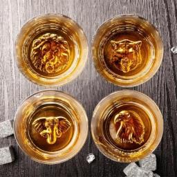 Melbify Gold Animal Label Whiskey Glasses | Set of 4 | 300 ml | High Balled & Animal Embedded | Ideal for Serving Whiskey, Cognac, Vodka, Gin | Suitable for Home, Restaurants & Bars