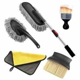 Microfiber Car Duster with Long Handle Car Cleaning Brush Exteriror and Interiror Car Cleaning Cloth Car Ac Vent Cleaner Brush for Car, Motorbike, SUVs Car Cleaning Kit. (5Pcs)