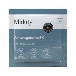 Miduty Ashwagandha 3X Supplement 500 Mg Serving - KSM 66 Ashwagandha - Triple Strength Formula for Mood Stability, Focus, Strength & Stress - 6 Capsules