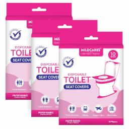MildCares Disposable Toilet Seat Covers (Pack of 3, 30 Sheets) | No Direct Contact With Unhygienic Seats | Protects Against Germs For Public Toilets & Travel Essentials | Flushable & Nature Friendly