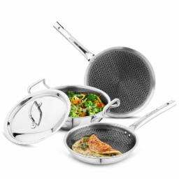 Millerhaus 4 Pcs Triply Honeycomb Cookware Set - 22cm (2.6 L) Kadai, Stainless Steel Lid, 22cm Frypan, 28cm Tawa, Honeycomb Pattern with Non-Stick Coating, Faster Heating - Induction and Gas Ready