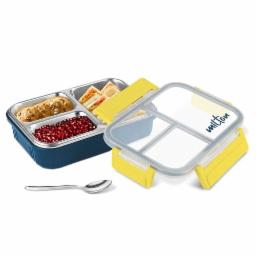 MILTON Fun Feast Inner Stainless Steel with PU Insulation, Bento Lunch Box with 3 Compartment, BPA Free, Food Grade, 4 Side Clip Lock, Ideal for Office Use, School Use, 700 ml, Dark Blue