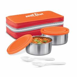 MILTON New Mini Lunch Insulated Tiffin, Set of 2, (280 ml Each), with Jacket, Orange | Light Weight | Leak Proof | Easy to Carry