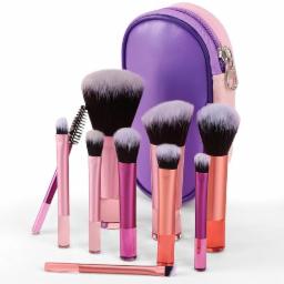 Modiq Mini Travel Makeup Brush Set – 10 Pcs Travel Friendly Brushes with Pouch, Portable & Complete On-the-Go Cosmetic Brush Kit for Effortless, Flawless Makeup (Purple-Pink)