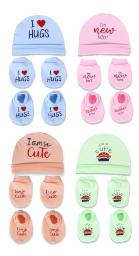 MOM'S DARLING (Pack of 4 pairs Newborn Baby Caps, Mittens And Booties combo Set for 0-6 Months Baby | Baby Gloves and Socks set | Baby shower gift | Designs and colors are same as in Photo