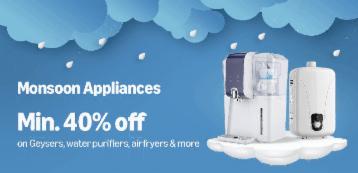 Make your home monsoon-ready with top deals on essential appliances. From water purifiers to geysers and air fryers, enjoy unmatched discounts and stay comfortable this rainy season.