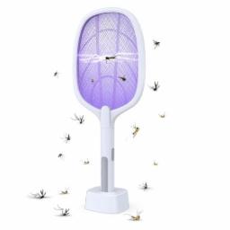 Mosquito Bat Rechargeable with UV Light Lamp, Electric Fly Swatter, 2-in-1 Mosquito Racket with Base, 1200mAh Long-Lasting Battery, Bug Zapper for Indoor and Outdoor (Fly Swatter UV)