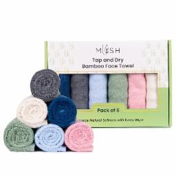 Mush 100% Bamboo Tap & Dry Face Towel | Ultra Soft, Absorbent, Quick Dry Towels for Facewash, Sports, Travel | Suitable for Sensitive & Acne Prone Skin | 13x13 in | Gift Friendly Packaging | Set of 6