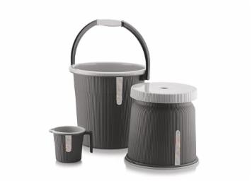 Nabhya Combo of 3 pcs Bathroom Accessories Set Plastic Bathroom Set with 20Ltr Plastic Bucket, Small Mug and Big Stool for Home, Kitchen & Bathroom (Black)