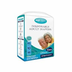 Napfresh Premium Adult Diapers Tape Style with Wetness Indicator | Upto 12 Hours Protection with Super Absorbent Core & Odour Lock | Leak Proof (Pack of 10, Extra Large (Waist Size 38"-65"))