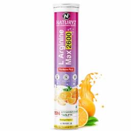 Naturyz L-Arginine Max 2600 Effervescent Tablets | Boosts Stamina | Increases Blood Flow | Improves Performance | Pre-workout Supplement – 15 Tablets (Orange Flavour)