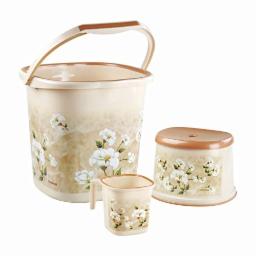 Nayasa Plastic Marble Bathroom Set of 3 | 25 LTR Bucket + 1.5 ML Mug + Stool | Bathroom Set | Bath Set for Bathroom | Cream