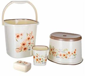 Get Nayasa Square DLX 4Pcs Bathroom Set(Bucket 18L+Mug 1.5L+Stool+Soap case) Off-White, Plastic worth Rs.1288 @ Rs.1009 only.