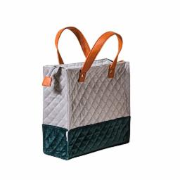 Nestasia Lunch Bag Velvet, 25 X 24 Cm | Grey & Green Lunch Bags for Office Women | Smooth Quilted Exterior & Inner Waterproof Lining | Ideal for Gifting, 10 Litre
