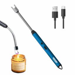 NEWDRU Rechargeable Electric Gas Lighter for Cooking Gas Stove, Kitchen, Pooja Candles & Diyas | USB Charging, Windproof, 360° Flexible Lighter (Buy from Real Seller - Check Sold by NEWDRU) - Blue