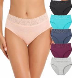 NICSY Womens Underwear Cotton Bikini Panties Lace Soft Hipster Panty for Women Stretch Full Briefs (Multicolor) Pack 5 L
