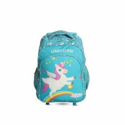 NOVEX Unicorn Kids Backpack Trolley with 2 - Wheels | Turquoise Blue, Polyester 2 Main Compartments Spinner Bag 18 - Inch | Unique Backpacks/School Bags for Cute Girls Kid