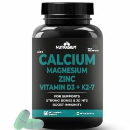 Nutrasium | Calcium & Vitamin D3 Tablets | Calcium Magnesium Zinc D3 & K2 | For Strong Bone & Joint Support | 60 Tablet (60 Tablets)