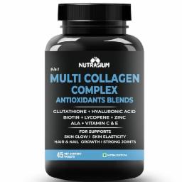 Nutrasium Multi Collagen Complex with Glutathione For Skin Radiance | with Hyaluronic Acid, Vitamin C & E | Veg Collagen Tablets For Skin & Hair | 45 tablets