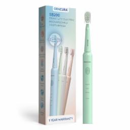 ORACURA Sonic Lite Electric Rechargeable Toothbrush SB200 Green, 1 Year Warranty, 36,000 strokes/min, 3 Modes, Waterproof, Lasts 25 Days in one charge, 2 Mins Timer, Rechargeable