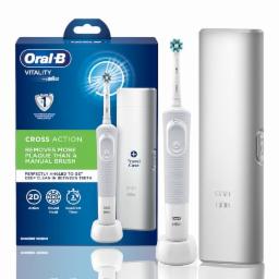 Oral B Vitality Criss Cross Electric Rechargeable Toothbrush with Travel Case, with replaceable brush head included (White colour), Adult, pack of 1