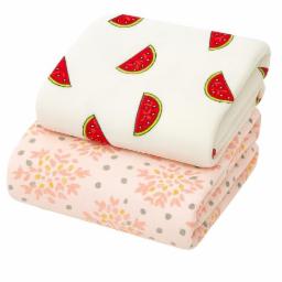 Organic Cotton Muslin Pack of 2 Baby Bath Towel Cotton Cloth Premium Baby Washable, Reusable, Absorbent, Extra Soft 120 X 120 Cm_ Leaf Dot & Watermelon