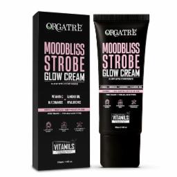 Orgatre Strobe Glow Cream for Instant Face Radiance | Primer Highlighter Moisturizer with Vitamin C, Almond Oil, Niacinamide & Hyaluronic Acid | Makeup Base for Oily Acne-Prone Skin | Pink Shade | 30g